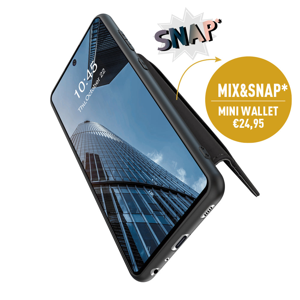 Das Back Cover Snap* Leather Black ist eine Handyhülle mit einem schönen, superfesten Design in schwarzer Farbe. Die Hülle besteht aus hochwertigem Leder mit einem robusten TPU-Material als Oberfläche. Die erhöhten Kanten um Ihr Smartphone herum sind flexibel und machen es sehr einfach, Ihr Telefon zu entfernen. Außerdem bleibt Ihr Bildschirm gut geschützt. Das SNAP Back Cover unterstützt kabelloses Laden.
