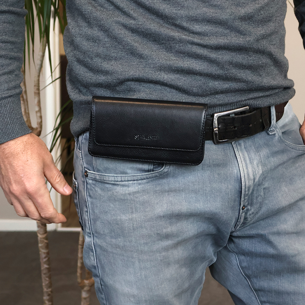 Mit der Gürteltasche AREZZO 5XL aus Leder von Valenta tragen Sie Ihr Handy immer nah am Körper. Diese Gürtelhülle lässt sich mit der praktischen Gürtelschlaufe und/oder dem Clip einfach an Ihrem Gürtel oder Ihrer Tasche befestigen. Beim Bücken und/oder Sitzen werden Sie keine Beschwerden verspüren